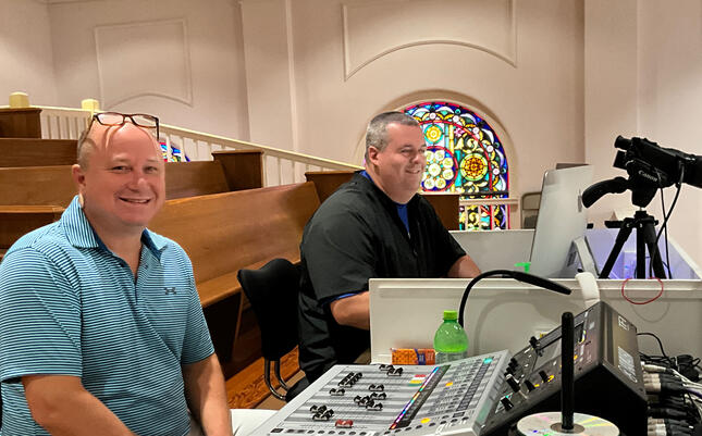 Nick Jolly has been serving as AV tech for 9 years. He shares responsibilities with Gabe Watson. He is married to Jessica and they have 1 daughter, Claire.In his spare time, you can find Nick coaching sports of all kinds. He has been the girls Varsity basketball coach at Chesterfield High School for 6 years. He has also been a coach for Chesterfield High School Football since 2015.Gabe Watson has been serving as AV tech for 9 years. He shares responsibilities with Nick Jolly. He is married to Charlotte, and they have one son, Rivers. Gabe enjoys working with people with developmental disabilities and is a sports enthusiast.Worship services and Wednesday night adult Bible study are Livestream over